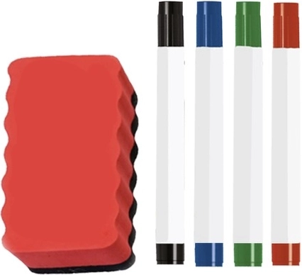 Alles Notwendige finden Sie im Paket – 4 Stifte, 10 Magnete und 1 magnetischen Radierer.