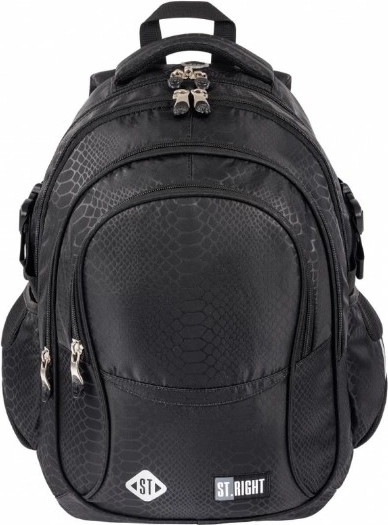 Der Schulrucksack ST.RIGHT im Design SHINY SNAKE vereint moderne Optik mit einer praktischen Innenaufteilung. Vier separate Fächer und zwei elastische Seitentaschen bieten Platz für Bücher, Hefte, Flasche und Snack. Dank der gepolsterten Smartphone-Tasche mit schützendem Fleece und einer weiteren Reißverschlusstasche für Ladegeräte ist Ihre Elektronik stets sicher verstaut.