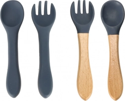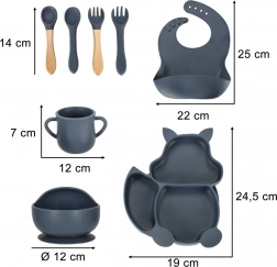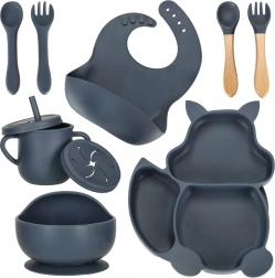 Silikon-Geschirrset für Kinder mit Eichhörnchenmotiv, 9-teilig, dunkelblau
