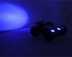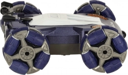 Omnidirektionale Räder sorgen für hervorragende Haftung und Manövrierbarkeit – das Auto bewegt sich in alle Richtungen, beherrscht Drehungen auf der Stelle und eindrucksvolle Kurvenfahrten. LED-Lichter und der Raucheffekt (Wasserdampf) heben das Fahrerlebnis auf ein Maximum und verwandeln jedes Rennen in eine Show.