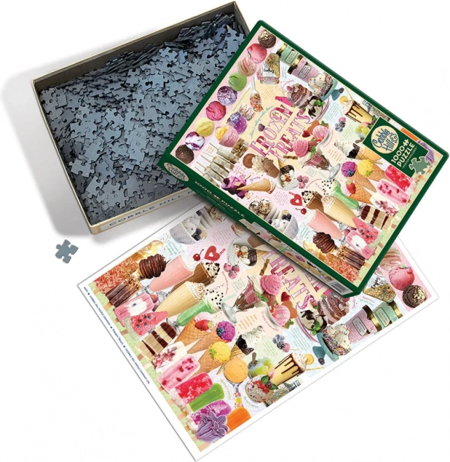 Tauchen Sie in die süße Welt des Motivs Gefrorene Leckereien ein und genießen Sie die hochwertige Verarbeitung des COBBLE HILL-Puzzles. Die spezielle, unregelmäßige Stanzung folgt keinem klassischen Raster, sodass die Ecken und Kanten der Teile nicht immer ausgerichtet sind. Das erhöht den Schwierigkeitsgrad beim Puzzeln und intensiviert das Erlebnis.
