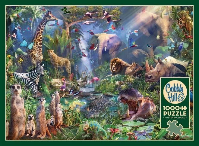 Tauchen Sie ein in die Welt der wilden Natur mit dem COBBLE HILL Puzzle „Im Dschungel“. Die spezielle Stanzung mit unkonventionellen Teilformen, die kein Standardraster kopieren, sorgt für ein intensiveres Puzzelerlebnis und einen höheren Schwierigkeitsgrad – ideal für alle, die mehr als ein klassisches Puzzle suchen.