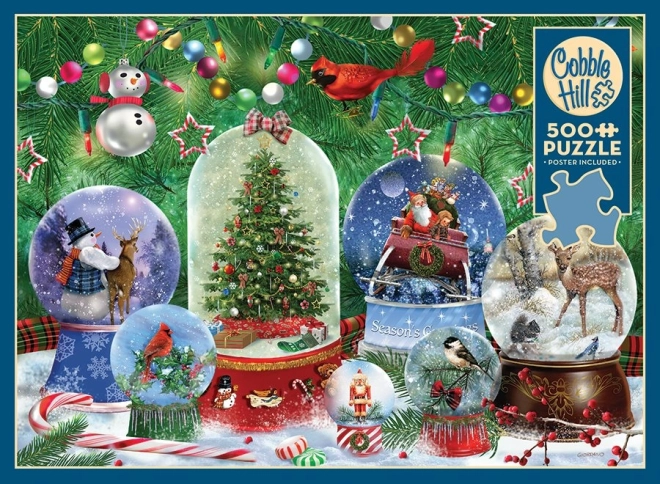 Tauchen Sie ein in das detailreiche Motiv der Schneekugel und genießen Sie hochwertiges Puzzeln mit COBBLE HILL. Der spezielle Stanzsatz mit unregelmäßigen Formen sorgt für eine höhere Schwierigkeit und ein originelles Erlebnis im Vergleich zu herkömmlichen Gitterstanzungen.