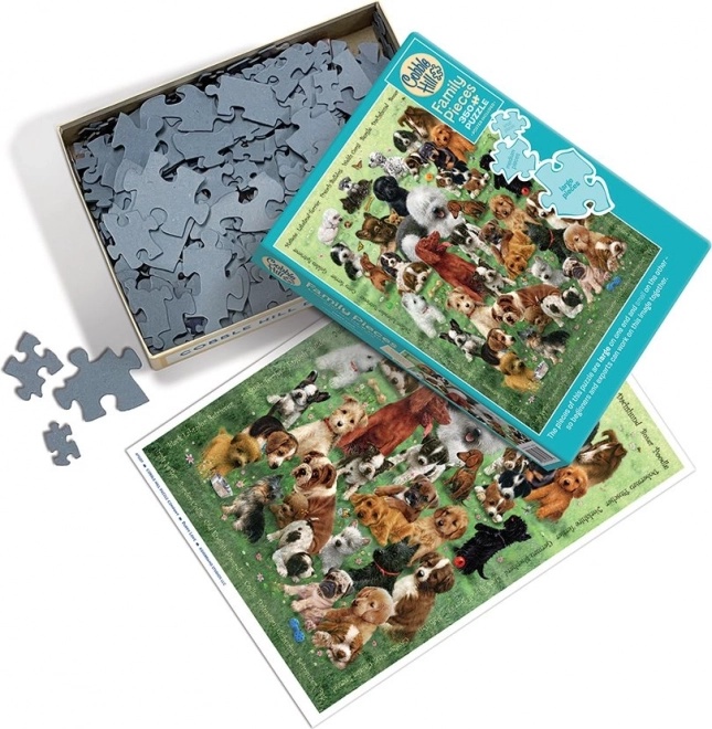 Das Familienpuzzle mit Welpenmotiv bietet eine clevere Aufteilung in große, mittlere und kleine Teile, sodass jeder seinen Teil des Puzzelns genießen kann. Jüngere Kinder beginnen mit den großen Teilen, ältere Kinder und Erwachsene widmen sich den feineren Details mit kleineren Teilen.