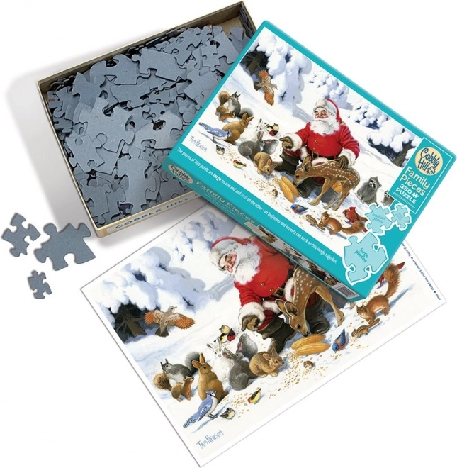Entdecken Sie den Zauber der Weihnachtszeit mit dem COBBLE HILL Familienpuzzle „Santa mit tierischen Freunden“. Dank der drei Teilgrößen findet jeder sein eigenes Tempo und das Puzzeln wird zu einer angenehmen Familienaktivität. Große Teile eignen sich für jüngere Kinder, mittlere für Schulkinder und Großeltern, und kleine Teile für erfahrenere Puzzler.