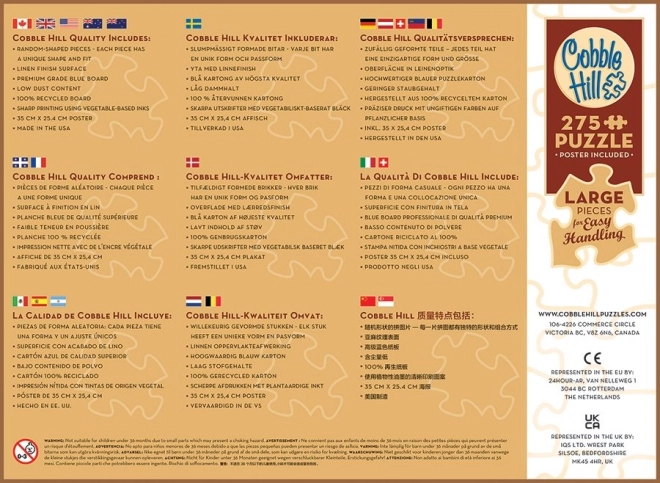 Genießen Sie entspanntes Puzzeln im Winter mit dem Puzzle COBBLE HILL aus der Easy-Handling-Kollektion. Enthält 275 extra große Teile für bequemes Greifen, eine unregelmäßige Stanzung für eine abwechslungsreichere Herausforderung und ein Vorlagenposter für leichteres Zusammensetzen. Ideal für Senioren, Kinder und alle mit empfindlicher Sehkraft.