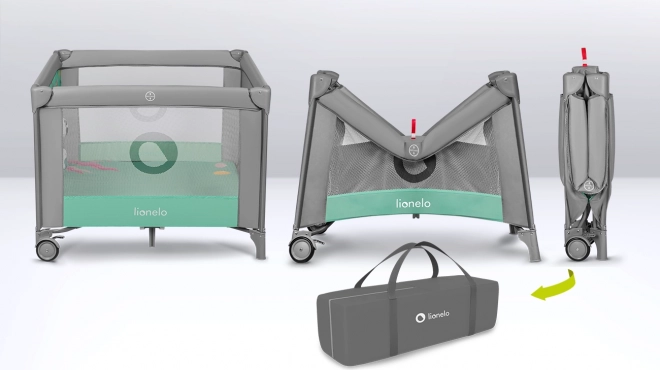 Der Laufstall enthält eine bequeme T25-Schaummatratze mit unterschiedlichen 3D-Oberflächen und ein LockGuard-System, das ein unbeabsichtigtes Zusammenklappen verhindert. Für eine einfache Mobilität hat der Laufstall 2 Räder mit Bremse und eine praktische Transporttasche für bequemes Tragen.