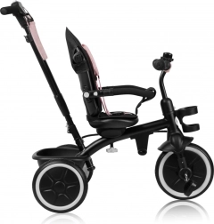 Das Kinderfahrzeug Lionelo Berry Rosa kombiniert die Funktionen eines Kinderwagens und eines Dreirads. Dank des drehbaren Sitzes und des höhenverstellbaren Griffs passt es sich den Bedürfnissen von Kind und Eltern an. Die Sicherheit wird durch 3-Punkt-Gurte, einen Schutzrahmen und eine Schranke um den Sitz herum gewährleistet. Einfaches Zusammenklappen per Klick ohne Werkzeug erleichtert die Handhabung.