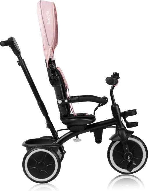 Lionelo Berry Rosa ist ein vielseitiges und funktionales Kinder-Dreirad, ideal für Kinder von 9 Monaten bis etwa 5 Jahre oder bis zu einem Gewicht von 25 kg. Der um 360 Grad drehbare Sitz und der höhenverstellbare Griff bieten maximalen Komfort und Kontrolle.