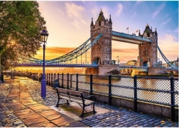 Das Puzzle zeigt ein wunderschönes Foto der Tower Bridge bei Sonnenuntergang, ideal für Fans von Architektur und Reisen.