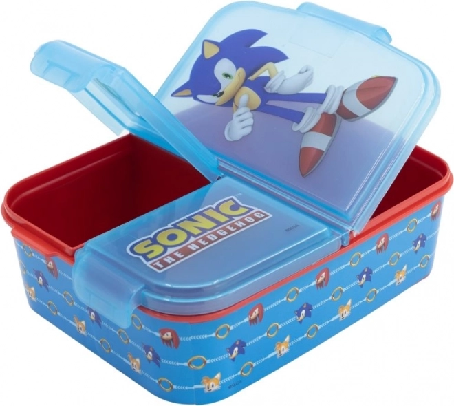 Multifunktionale Brotdose Sonic ist die perfekte Lösung für Kinder auf dem Weg zur Schule, zum Spielplatz oder zu Ausflügen. Mit mehreren Fächern ist sie ideal für die getrennte Aufbewahrung von Lebensmitteln.