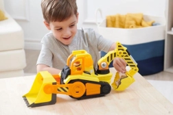 Der beliebte Bauprofi fährt mit seinem Deluxe-Bulldozer zur Arbeit. Kinder können die Figur in die Kabine setzen und mit einem einfachen Druck blinkende Lichter und realistische Soundeffekte auslösen. Die vordere Schaufel und der hintere Baggerarm sind vollständig beweglich – so werden Graben, Aufnehmen und Beladen zum Kinderspiel.