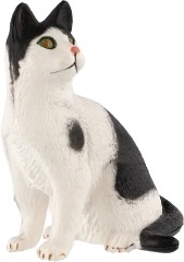 Feine Fellstruktur, präzise Proportionen und schwarz-weiße Färbung wirken authentisch – die Figur sieht aus wie eine echte sitzende Katze.
