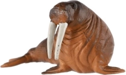 Detailgetreu gearbeitete Plastikfigur eines Walrosses, geeignet für Bildungszwecke oder als Sammlerstück. Robuste und realistische Darstellung eines Walrosses mit weißen Stoßzähnen.