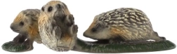 Diese kleine Dekoration zeigt eine Igelmutter mit ihren Jungen auf einem grünen Sockel, der an eine Wiese erinnert. Sie wirkt natürlich dank sorgfältig ausgearbeiteter Details der Stacheln, Schnäuzchen und Pfoten. Ideal für das Regal, die Fensterbank, den Schreibtisch oder die Kinderecke.
