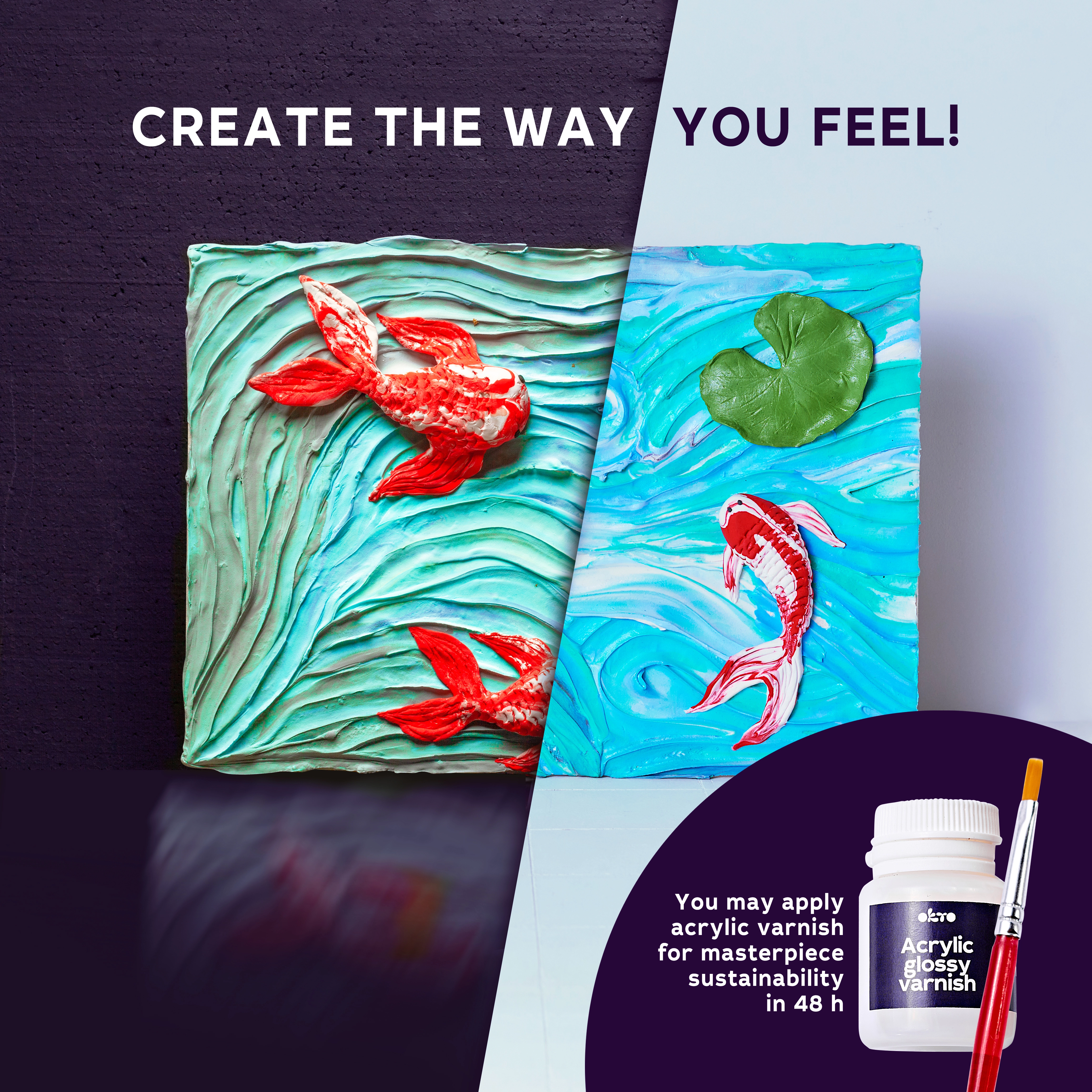 Entdecken Sie kreativen Spaß mit dem Set zur Bildgestaltung Koi-Karpfen im Format 30 × 40 cm. Enthält alles für einen mühelosen Start – von der Leinwand über Modelliermassen bis hin zum Lack. Ideal für Anfänger und Fortgeschrittene, die ein eigenes plastisches 3D-Bild mit dem Motiv Koi-Karpfen gestalten und ihrem Interieur ein originelles künstlerisches Element hinzufügen möchten.