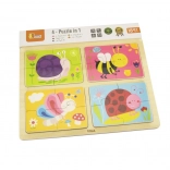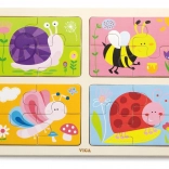 Das Set enthält vier separate Puzzles mit bunten Tierillustrationen, die für Kinder geeignet sind. Jedes Bild besteht aus vier Teilen, insgesamt sind es 16 Teile. Die Puzzles sind für Kinder ab 18 Monaten geeignet und fördern ihre Feinmotorik, ihr logisches Denken und die Kreativität.