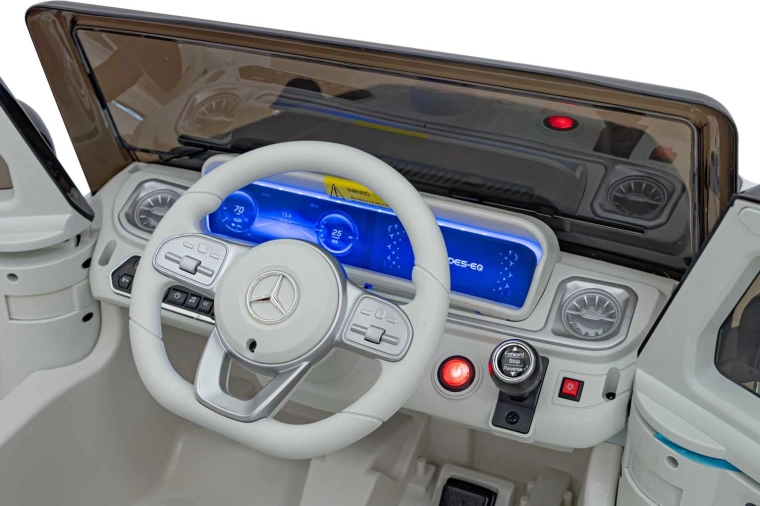 Das elektrische Kinderauto MERCEDES‑BENZ EQG ist die ideale Wahl für kleine Fahrer, die die Kombination aus luxuriösem Look und komfortabler, sicherer Fahrt lieben. Realistische Details, öffnende Türen und das beleuchtete hintere „Reserverad“ schaffen ein authentisches Fahrerlebnis. Die starke 12 V 9 Ah Batterie und mehrere Motoren sorgen für gleichmäßige Kraftentfaltung auch bei längeren Ausfahrten.