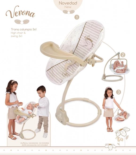 Multifunktionaler 3-in-1 Hochstuhl und Schaukel für Puppen Verona