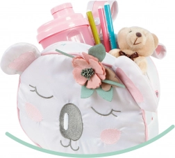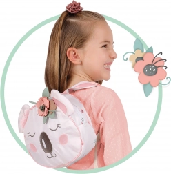 Suchen Sie den ersten Rucksack für Ihr Kind, der hübsch und praktisch ist? Dieser rosa-weiße Rucksack mit Motiv einer schlafenden Koala mit Blümchen hat kompakte Maße, eine angenehme textile Oberfläche und ein leichtes Reißverschluss-Schließen. Dank der verstellbaren Schultergurte bietet er Kindern ab 3 Jahren bequemen Tragekomfort.