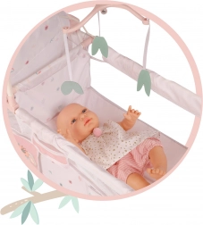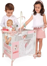 Das entzückende Puppenbett aus der KOALA 2024-Kollektion bietet 5 praktische Funktionen in einem Set: ein Bettchen mit Netzfenster, ein Mobile, eine Wickelauflage, einen Hochstuhl mit Zubehör und einen großen Kleiderschrank mit Reißverschluss. Dank der klappbaren Konstruktion, der präzisen Verarbeitung und dem zarten spanischen Design ist es ideal für realitätsnahes Rollenspiel ab 3 Jahren.