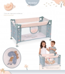 Das COCO Reisebett für Puppen ist eine schöne Ergänzung fürs Kinderzimmer und ein praktischer Begleiter für unterwegs. Dank des stabilen Rahmens aus Metall und Kunststoff sowie Stoffseiten mit Netz ist es leicht, sicher und gut belüftet. Das dezente graublaue Design mit dem süßen Dinosaurierbaby passt zu den weiteren Accessoires der Kollektion.