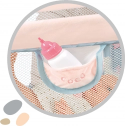 Das Bett lässt sich blitzschnell zu einem kleinen Paket zusammenlegen, nimmt kaum Platz ein und kann von Kindern überallhin mitgenommen werden. Die praktische Seitentasche hält Fläschchen, Schnuller oder andere Puppenutensilien stets griffbereit.