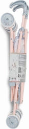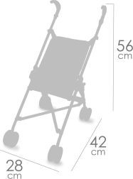Der robuste Metallrahmen und der strapazierfähige Stoff in graublauem Ton mit sandfarbenen und rosafarbenen Details sorgen für lange Haltbarkeit und sicheres Handling. Das praktische Sicherheitssystem gegen Einklemmen der Finger schützt beim Zusammenklappen. Der Wagen ist für Puppen verschiedener Größen geeignet, und dank des Dreipunktgurts bleibt die Puppe stets sicher an ihrem Platz.