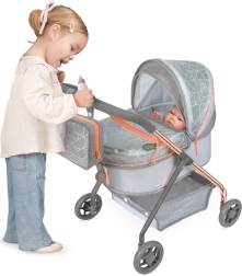 Der stilvolle Kinder-Puppenwagen aus der CITY X-Kollektion begeistert kleine Mamas mit modernem Design in Grau-Kupfer, stabiler Konstruktion und leichter Handhabung. Inklusive abnehmbarer Umhängetasche mit Reißverschluss, Verdeckabdeckung mit transparenter Tasche, Matratze und unterem Aufbewahrungskorb. Ideal für Kinder ab 3 Jahren.