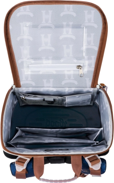 Der Ranzen ist mit einem verstärkten Korpus und ergonomisch geformten Rücken für bequemes Tragen ausgestattet. Das verstellbare Rückensystem ermöglicht eine optimale Einstellung.
