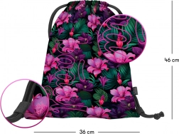 Der Beutel PARADISE bietet eine Kombination aus Eleganz und Praktikabilität dank seines attraktiven Blumenmusters mit rosa und violetten Blumen auf dunklem Hintergrund. Er ist aus robustem und abwaschbarem Material hergestellt, was eine lange Lebensdauer und einfache Pflege garantiert. Der geräumige Innenraum ist ideal zur Aufbewahrung von Schuhen, Büchern oder anderen Gegenständen.