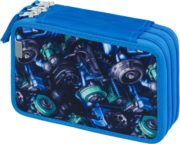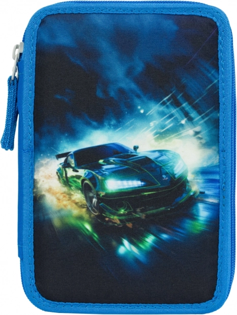 Großes Baagl Schulmäppchen mit Rennwagenmotiv, ideal für die sichere und übersichtliche Aufbewahrung all Ihrer Schreibutensilien. Dreilagiges Design, robuste YKK-Reißverschlüsse und universelle Gummibänder sorgen für Komfort und Praktikabilität.