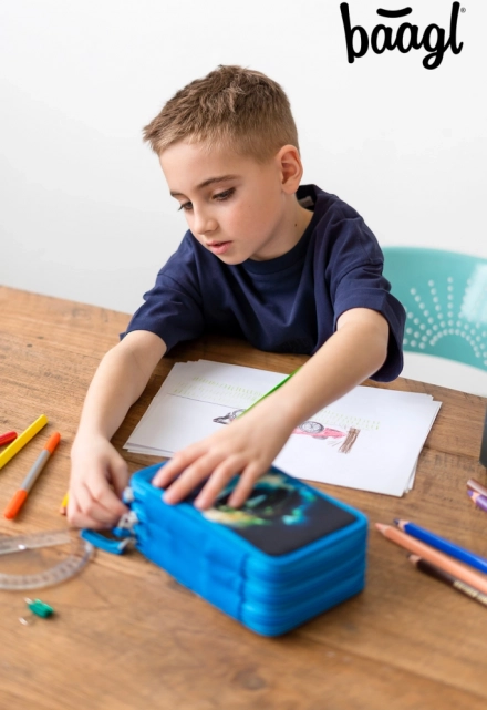 Entdecken Sie die ideale Lösung für all Ihre Schulbedürfnisse mit diesem großen dreilagigen Mäppchen von Baagl. Seine robuste Konstruktion mit verstärktem Rücken garantiert Langlebigkeit und einfache Handhabung. Das hochwertige YKK-Reißverschlusssystem sorgt für eine sichere Aufbewahrung Ihrer Stifte, Kugelschreiber und weiteren Zubehörs.
