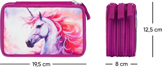 Extra geräumiges dreistöckiges Mäppchen für all Ihre Schreibutensilien mit Einhornkönigreich-Motiv. Hochwertige Konstruktion mit robusten Reißverschlüssen garantiert lange Lebensdauer.