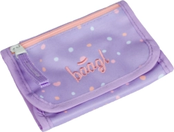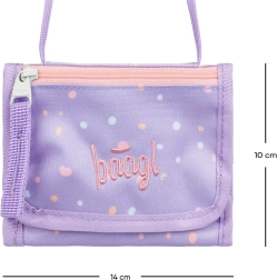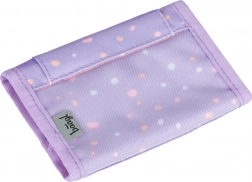Die durchdachte Aufteilung mit Klettverschluss und innenliegendem Reißverschlussfach für Münzen hält Bargeld, Karten und Schlüssel übersichtlich und sicher. Das stilvolle, lilafarbene Design mit Punkten und dezentem Logo verleiht der Geldbörse einen modernen Look, der perfekt zu Schul- und Freizeitoutfits passt.