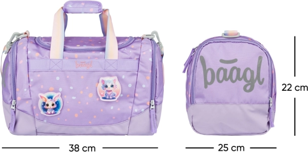 Die leichte und stilvolle Kindersporttasche Baagl Mazlíčci ist ideal für Vereine, kürzere Ausflüge sowie als Handgepäck. Sie bietet eine geräumige Hauptkammer mit breiter Öffnung, eine separate Schuhfachtasche, einen abnehmbaren, verstellbaren Schulterriemen und einen verstärkten, wasserabweisenden Boden. Für ein leichtgängiges Öffnen sorgen zuverlässige YKK-Reißverschlüsse, und reflektierende Elemente erhöhen die Sichtbarkeit.