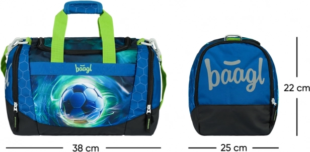 Die BAAGL Kinder-Sporttasche Fußballball ist die ideale Wahl für kleine Sportler. Dank der leichten Konstruktion trägt sie sich angenehm, während die breite Öffnung den Zugang zur Hauptkammer erleichtert. Das separate Schuhfach trennt Schuhe von Kleidung, und kleine Dinge finden Platz in der Innentasche.