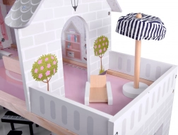 Das Haus ist mit einem LED-Streifen für angenehmes Ambientelicht in jedem Raum ausgestattet. Offene Bauweise, Fenster und eine dekorierte Fassade mit Blumen und Laternen verleihen einen realistischen Charakter. Im Lieferumfang ist eine breite Auswahl an Holzmöbeln enthalten: vom Esstisch, Sesseln und Sofa über Badezimmereinrichtung bis hin zum schwarzen Klavier mit Hocker sowie einer Liege mit Sonnenschirm für die Terrasse.