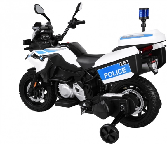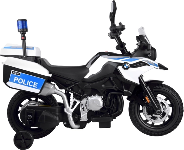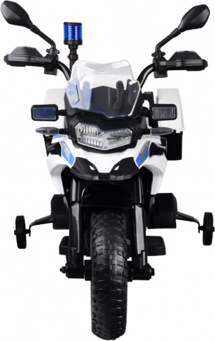 Großes BMW Polizei-Elektromotorrad mit Blaulicht und Satteltaschen ist die ideale Wahl für jeden kleinen Hüter des Gesetzes. Dieses Kindermotorrad, das einem echten Polizeimotorrad detailgetreu nachempfunden ist, begeistert jeden jungen Fahrer. Das Motorrad ist mit einem starken Motor und Akku ausgestattet:
