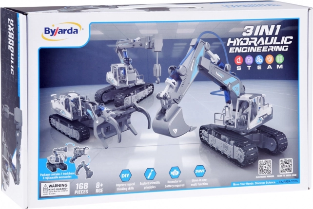 • 3 Modelle in 1 Set: verschiedene Baumaschinen für abwechslungsreiches Spiel.