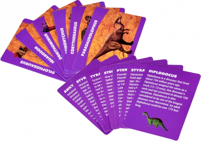 Farbenfrohe Karten mit Namen und Wissenswertem über Dinosaurier fördern Neugier und natürliches Lernen beim Spielen. Der Text ist auf Englisch – ideal auch für die ersten Vokabeln.