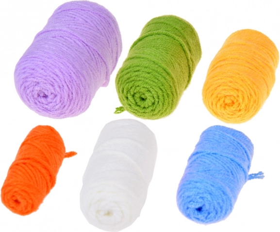 Sechs farbige Garnknäuel beflügeln die Fantasie und ermöglichen fröhliche, kontrastreiche oder sanfte Farbkombinationen.