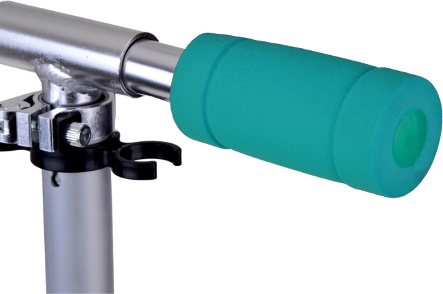 Teleskopstange mit mehreren Höhenstufen wächst mit dem Kind mit. Weiche Schaumstoffgriffe sorgen für einen sicheren und bequemen Halt.