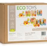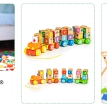 Der Zug enthält 26 Holzwürfel, die mit großen und kleinen Buchstaben des Alphabets sowie verschiedenen Bildern markiert sind. Kinder können aus den Würfeln einfache Wörter bilden, Türme bauen oder sie auf die Waggons legen, und wenn sich der Zug bewegt, beginnen sich die Würfel um ihre Achse zu drehen, was sicherlich die Aufmerksamkeit jedes Kindes auf sich zieht.