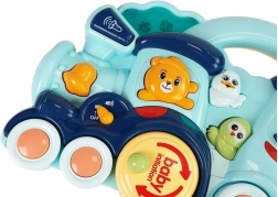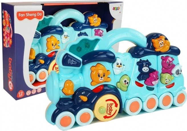 Interaktive blaue Lokomotive für Kinder mit Tiergeräuschen und Lichteffekten