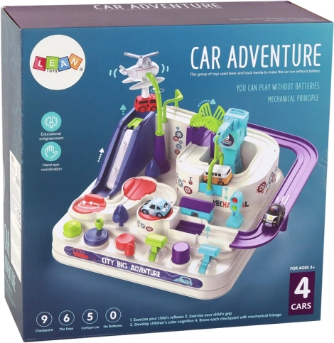 Die interaktive Hindernisbahn ist so konzipiert, dass sie die Fähigkeiten und Kreativität von Kindern fördert. Sie verfügt über Tasten und drehbare Knöpfe, die eine geschickte Bedienung ermöglichen und jede Fahrt nicht nur unterhaltsam, sondern auch herausfordernd machen. Kinder können eines der vier Autos, die Teil des Sets sind, steuern, verschiedene Hindernisse überwinden und die faszinierende Bahn entdecken.