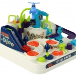 Enthält verschiedene Wege und Hindernisse, die die Bewegung von Miniaturfahrzeugen und Hubschraubern ermöglichen, um kreatives Spielen zu fördern.