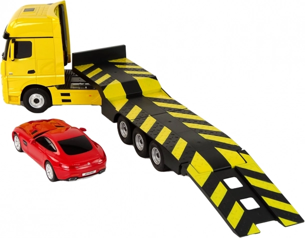 Große Gummiräder sorgen für Stabilität und Traktion beim Transport anderer Fahrzeuge. Darüber hinaus verstärken leuchtende Lichter die Realistik und ergänzen eindrucksvoll die Präsentation auf der Straße.