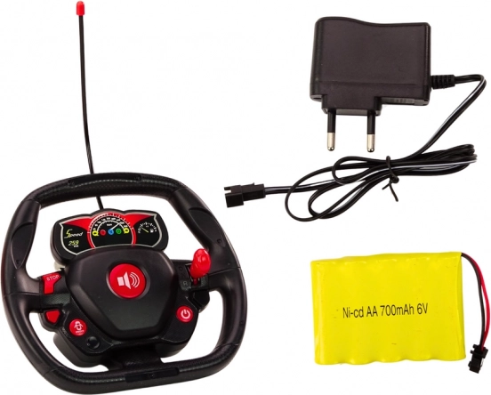 Das Modell wird von einem 6 V 700 mAh Akku (im Lieferumfang) mit beiliegendem Ladegerät betrieben. Die Fernsteuerung benötigt 2× AA 1,5 V Batterien (nicht enthalten). Das Auto ist ideal für Kinder ab 6 Jahren und erfüllt die Normen CE und EN71.