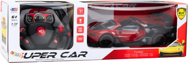 Entdecken Sie Fahrspaß pur mit dem roten RC-Sportwagen im Maßstab 1:12. Realistische Optik, präzise Verarbeitung und interaktive Funktionen wie öffnende Türen und Kofferraum sorgen für ein authentisches Fahrerlebnis. Die Lenkrad-Fernsteuerung mit 27 Hz ermöglicht intuitive Bedienung, während Lichter und Sounds die Renn-Atmosphäre intensivieren.